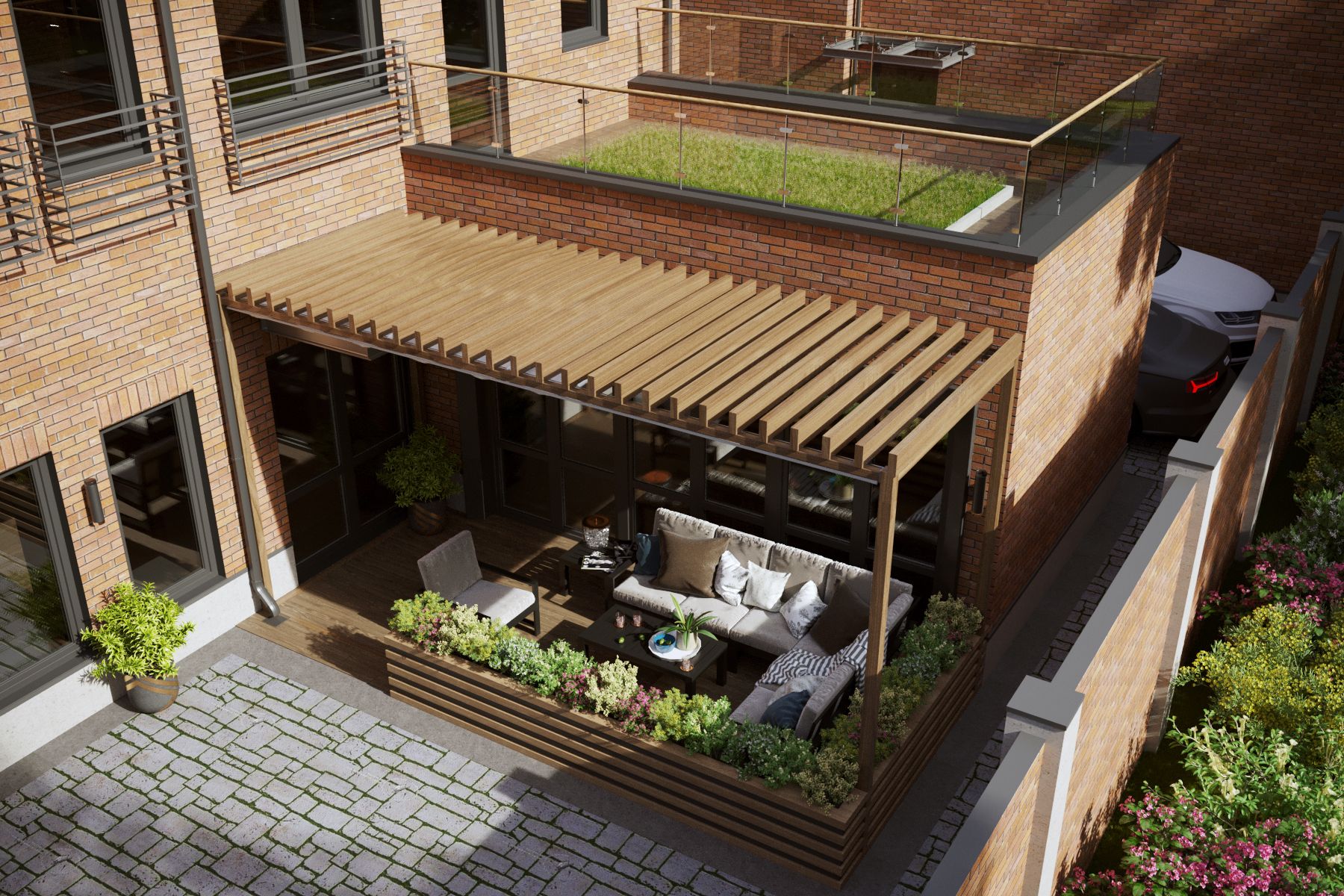 This is a special solution for narrow built-up areas where, in order to create convenience, it is necessary to go underground because there is no available space at ground level near the house.