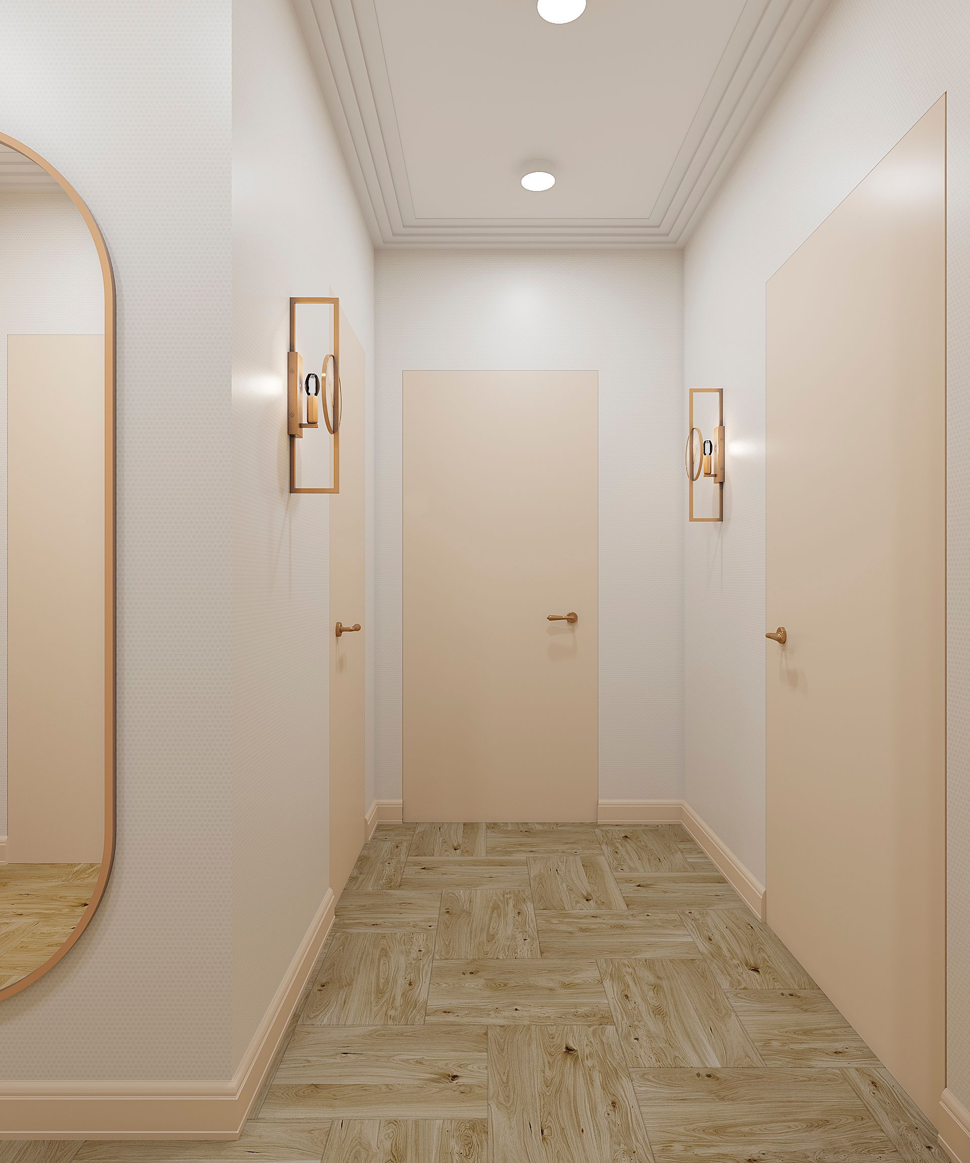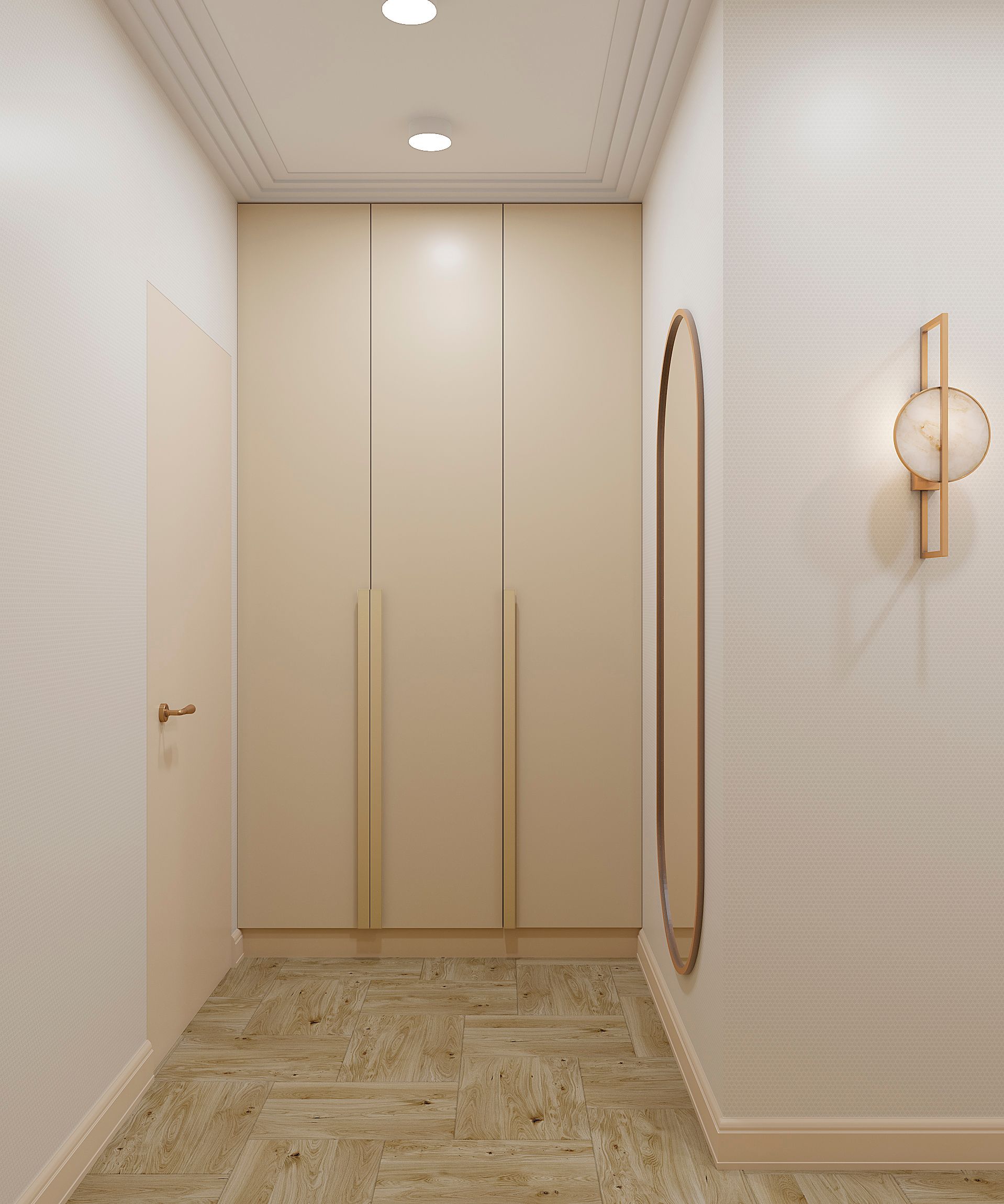 "But where is the kitchen?" you may ask. This was originally a one-bedroom apartment that shares an entrance hall with the current residence of the family. The apartment was connected in such a way and repurposed. The kitchen is located in another apartment, whose design was not developed.