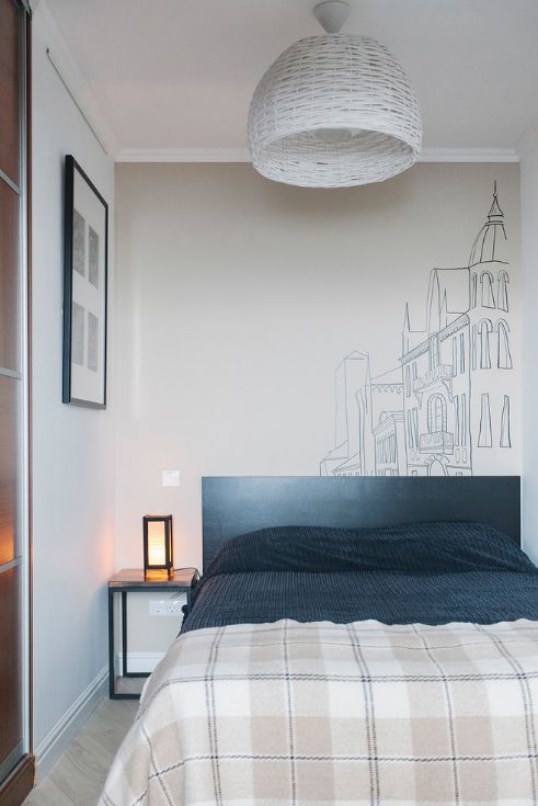 Также хозяйка квартиры нарисовала городскую улицу, уходящую в перспективу, на изголовье своей кровати. Этот мотив настолько ее впечатлил, что она использовала его не только в своей квартире, но и в проекте интерьера офиса.