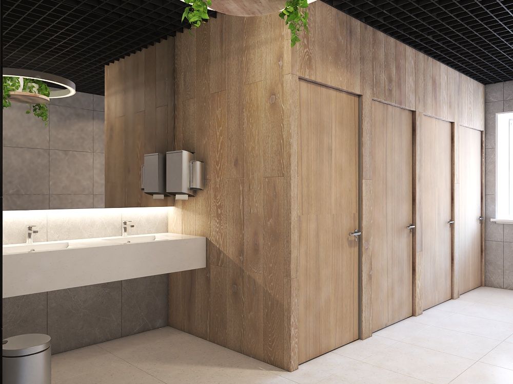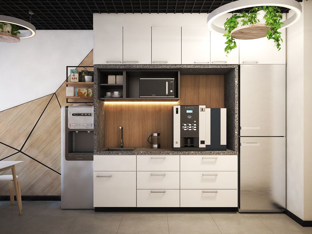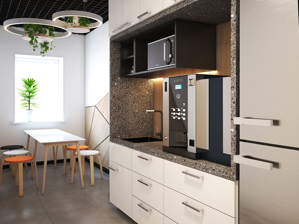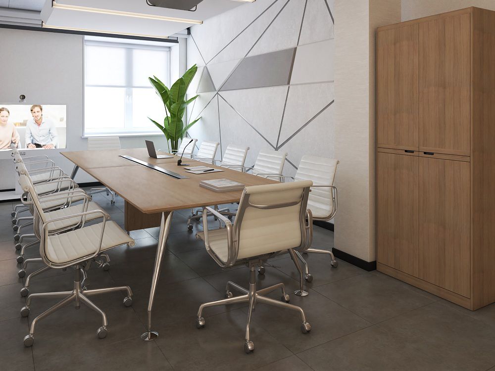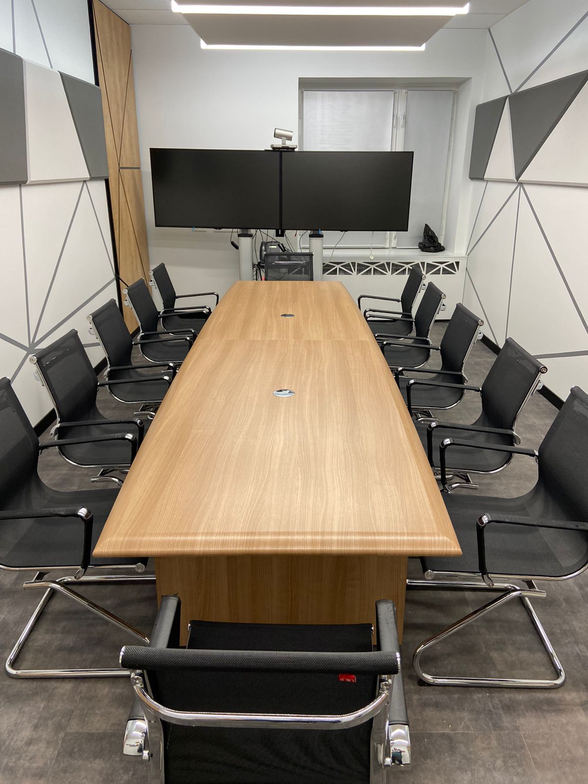 Офис РН-Битум решен в скандинавском стиле, здесь много дерева, бетона и контраста черного и белого. Это яркий офис для приема высокопоставленных гостей компании, проведения онлайн конференций и комфортной работы сотрудников. В дизайне применены шумопоглощающие материалы (потолки, стеновые панели, подвесные акустические конструкции в переговорной) и материалы с высокой износоустойчивостью (напольное покрытие).