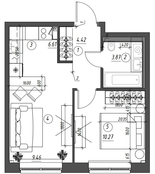 ΠΠ»Π°Π½ΠΈΡΠΎΠ²ΠΊΠ° Π΅Π²ΡΠΎΠ΄Π²ΡΡΠΊΠΈ ΠΎΠ±ΡΡΠ½ΠΎ ΠΏΡΠ΅Π΄ΡΡΠΌΠ°ΡΡΠΈΠ²Π°Π΅Ρ ΠΏΡΠΎΡΡΠΎΡΠ½ΡΡ ΠΊΡΡ Π½Ρ-Π³ΠΎΡΡΠΈΠ½ΡΡ, ΠΎΡΠ΄Π΅Π»ΡΠ½ΡΡ ΡΠΏΠ°Π»ΡΠ½Ρ ΠΈ ΡΠΎΠ²ΠΌΠ΅ΡΠ΅Π½Π½ΡΠΉ ΡΠ°Π½ΡΠ·Π΅Π». ΠΠ°ΠΊ ΠΏΡΠ°Π²ΠΈΠ»ΠΎ, ΡΠ°ΠΊΠ°Ρ ΠΊΠ²Π°ΡΡΠΈΡΠ° ΠΈΠΌΠ΅Π΅Ρ ΠΏΠ»ΠΎΡΠ°Π΄Ρ ΠΎΡ 35 Π΄ΠΎ 50 ΠΊΠ²Π°Π΄ΡΠ°ΡΠ½ΡΡ ΠΌΠ΅ΡΡΠΎΠ². ΠΡΠ½ΠΎΠ²Π½Π°Ρ ΠΈΠ΄Π΅Ρ ΠΏΠ»Π°Π½ΠΈΡΠΎΠ²ΠΊΠΈ Π΅Π²ΡΠΎΠ΄Π²ΡΡΠΊΠΈ - ΠΎΠ±Π΅ΡΠΏΠ΅ΡΠΈΡΡ ΠΌΠ°ΠΊΡΠΈΠΌΠ°Π»ΡΠ½ΡΡ ΡΡΠ½ΠΊΡΠΈΠΎΠ½Π°Π»ΡΠ½ΠΎΡΡΡ ΠΈ ΡΠ΄ΠΎΠ±ΡΡΠ²ΠΎ ΠΏΡΠΎΠΆΠΈΠ²Π°Π½ΠΈΡ Π½Π° Π½Π΅Π±ΠΎΠ»ΡΡΠΎΠΉ ΠΏΠ»ΠΎΡΠ°Π΄ΠΈ.