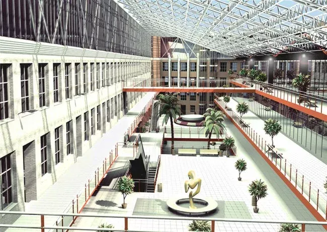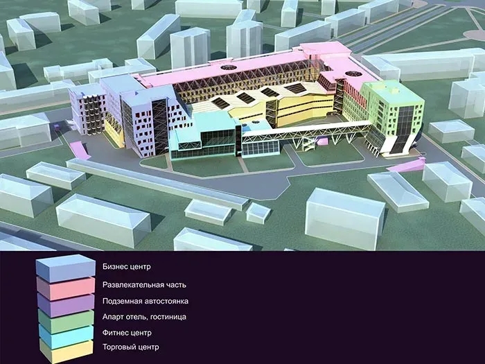 Основной акцент проекта заключается в создании длинного атриума, протянувшегося вдоль фронта основного здания. Этот атриум стал центральной площадкой, объединяющей все функции комплекса. Здесь расположены бизнес-центры, торговые центры, фитнес-центр и апарт-отель. Благодаря этому решению, посетители могут насладиться уникальной атмосферой и комфортом на протяжении всего комплекса.
