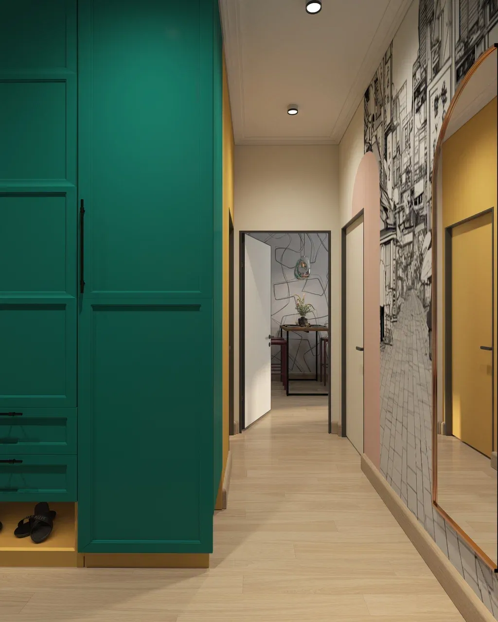 Зеленый шкаф в прихожей