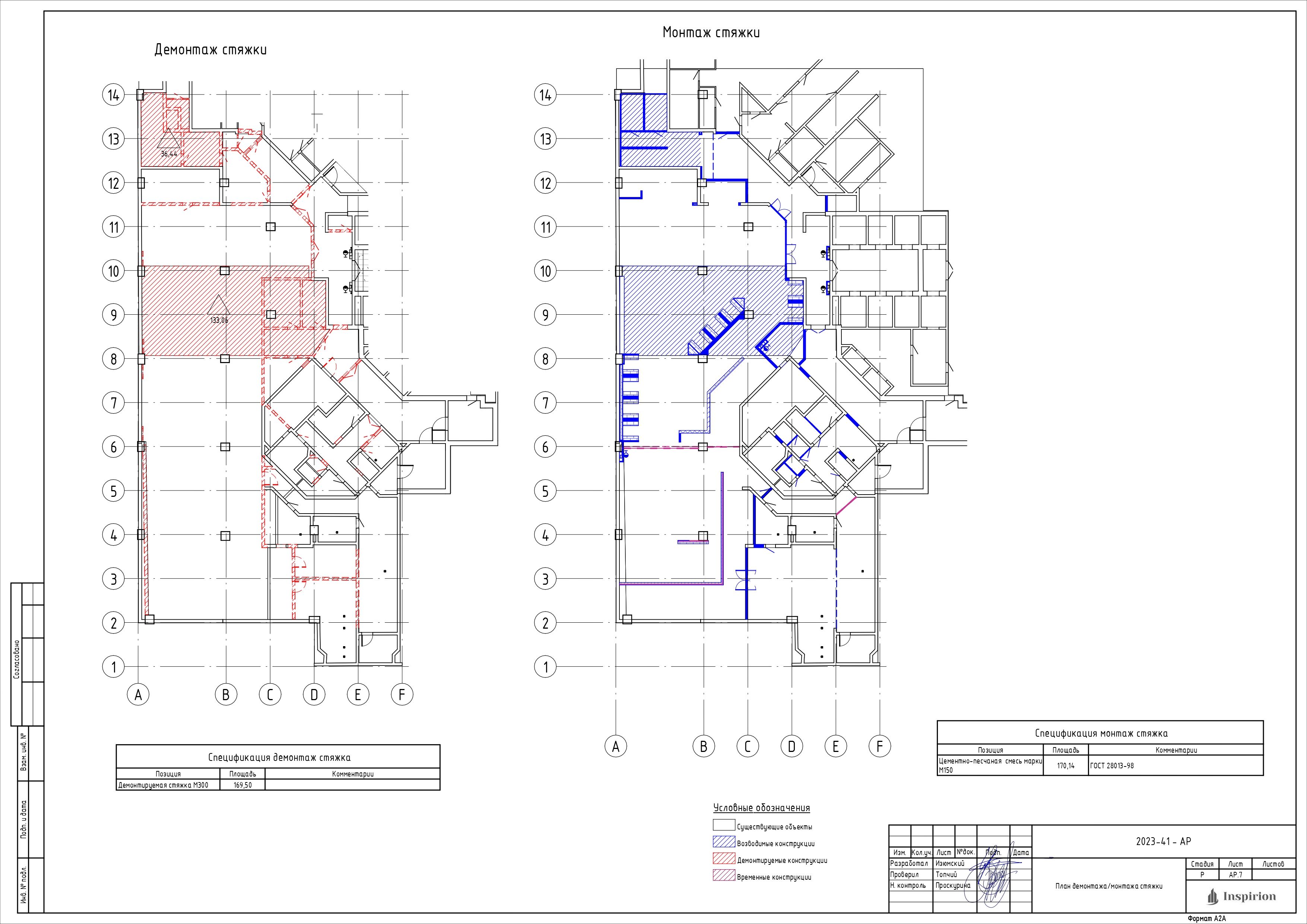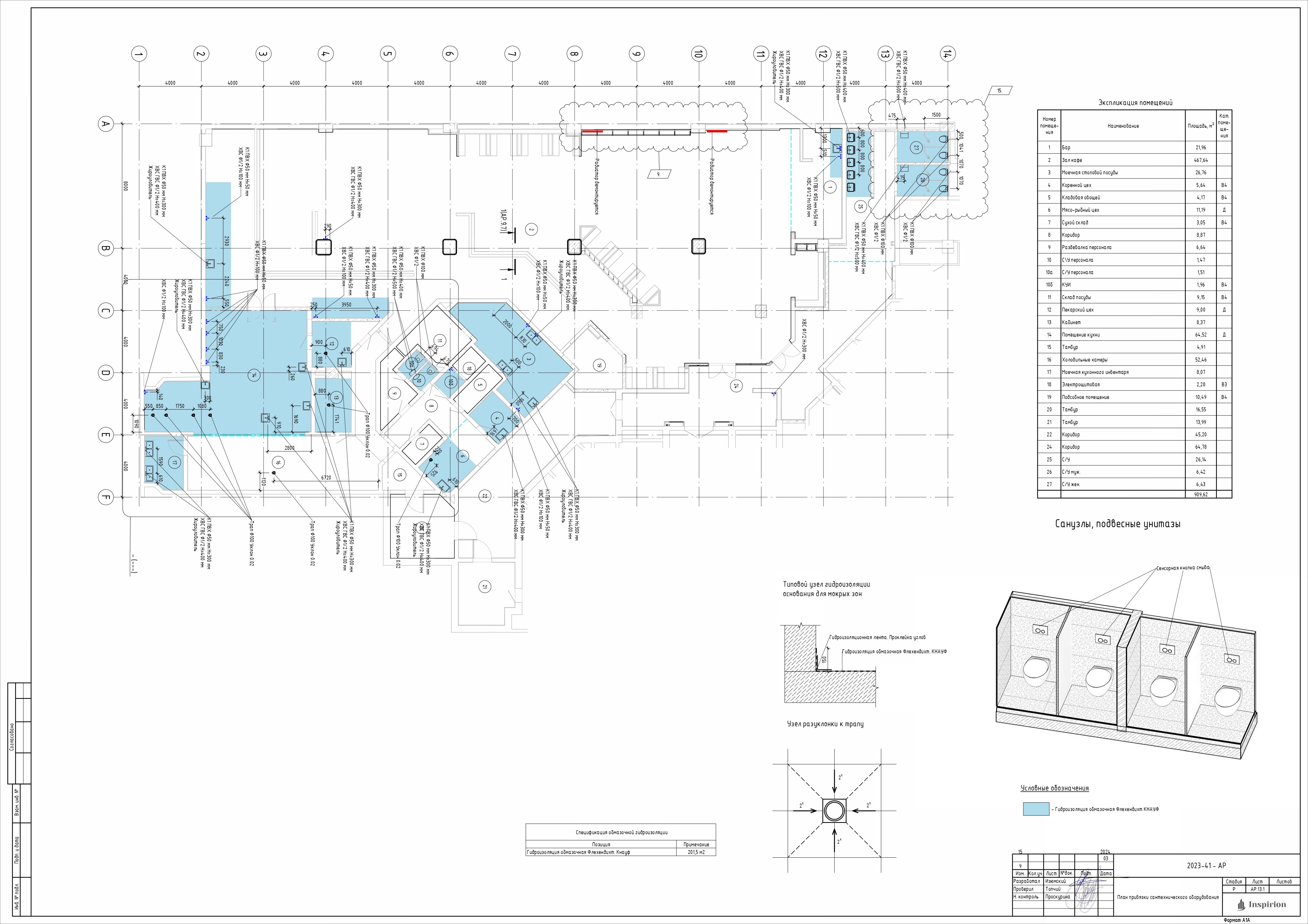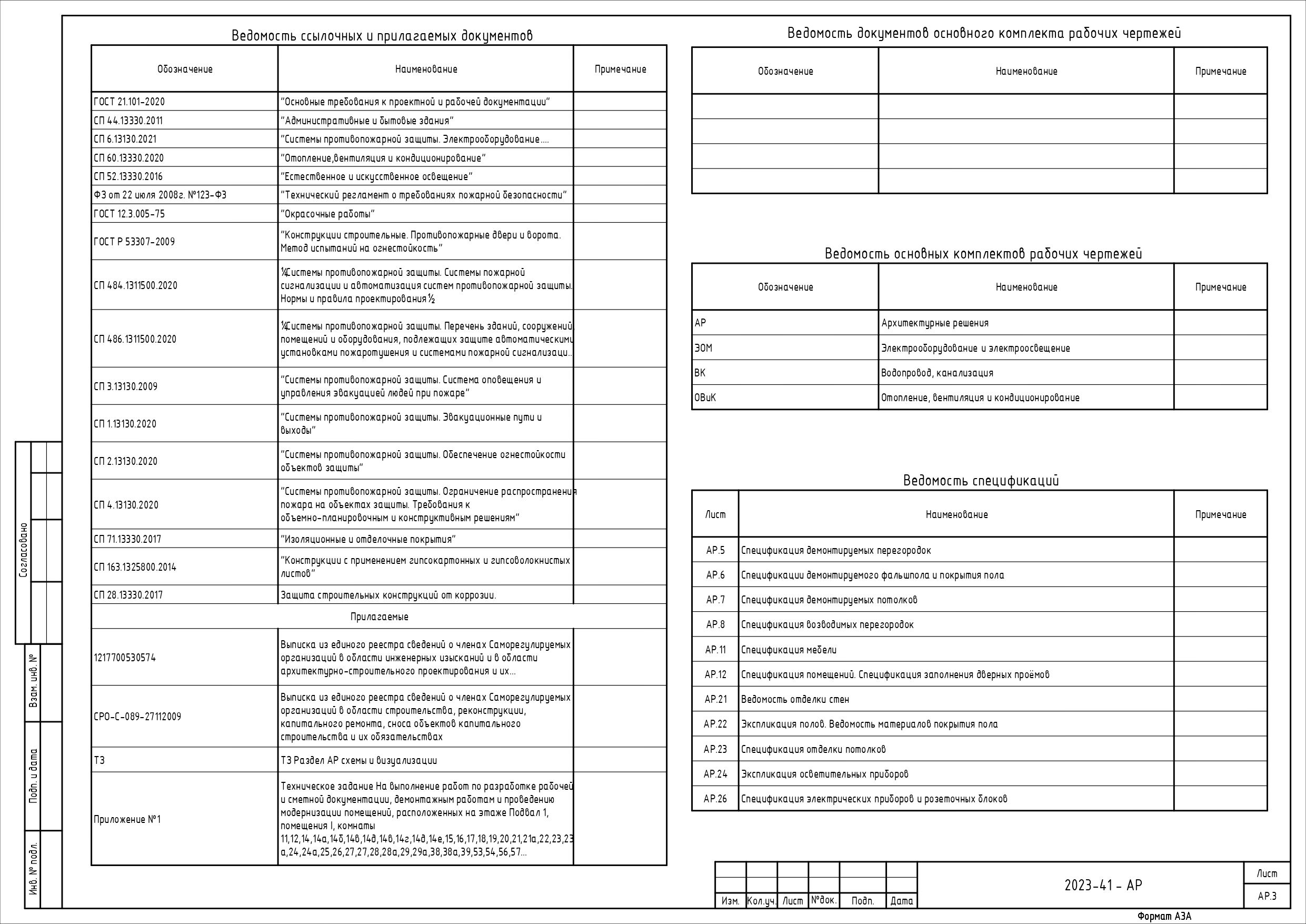 Порядок приемки скрытых работ по проекту ведется в соответствии с СП 48.13330.2019, СП 70.13330.2012, СП 71.13330.2017. По завершению строительных работ и их приемкой Заказчиком Подрядчик подготавливает Исполнительную документацию, куда в обязательном порядке включает акты освидетельствования скрытых работ проекта, а именно: Устройство стяжки пола, устройство гидроизоляции пола, акт освидетельствования строительных конструкций на обеспечение требуемого предела огнестойкости и требуемого класса пожарной опасности, возведение перегородок из газоблока.
