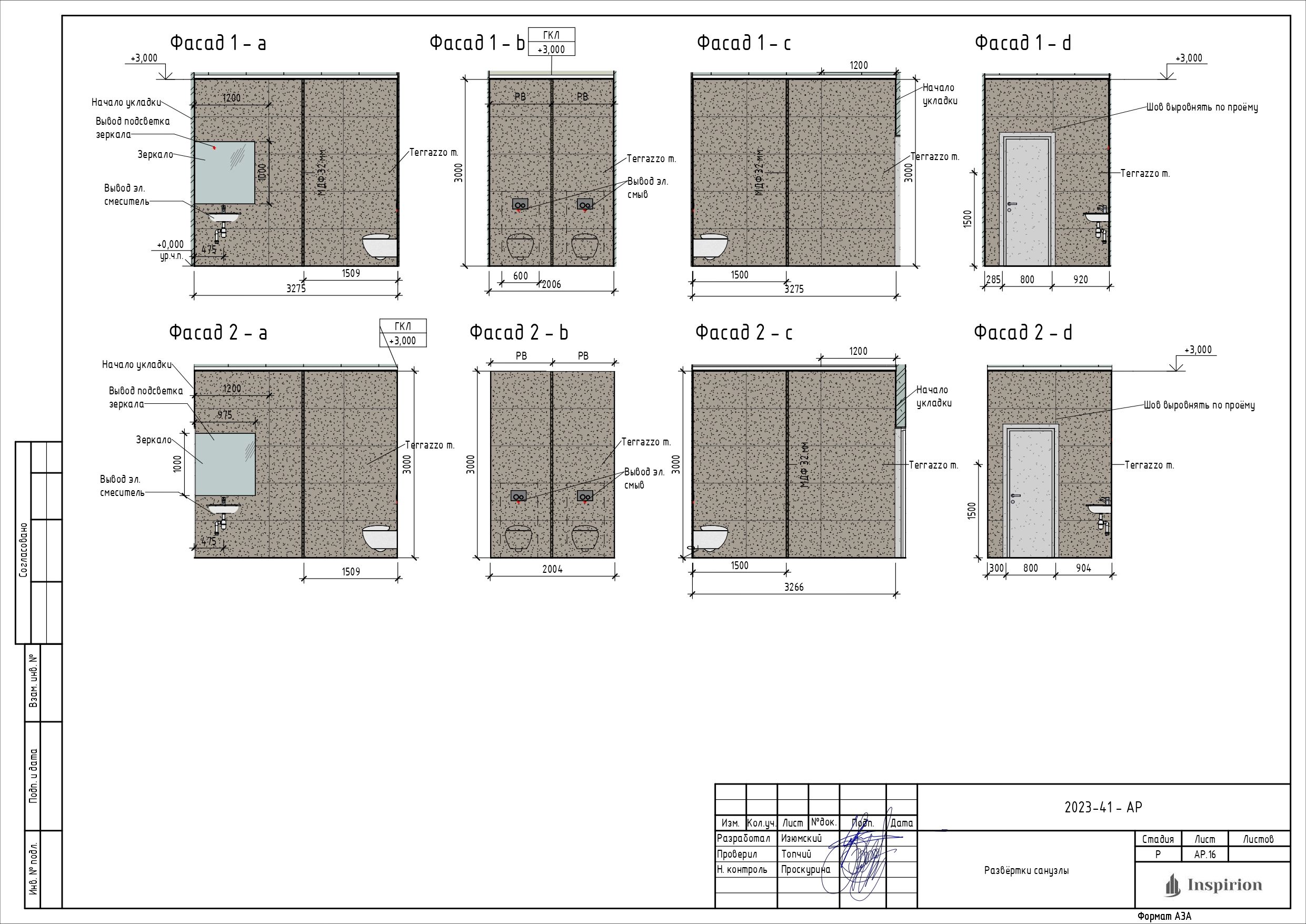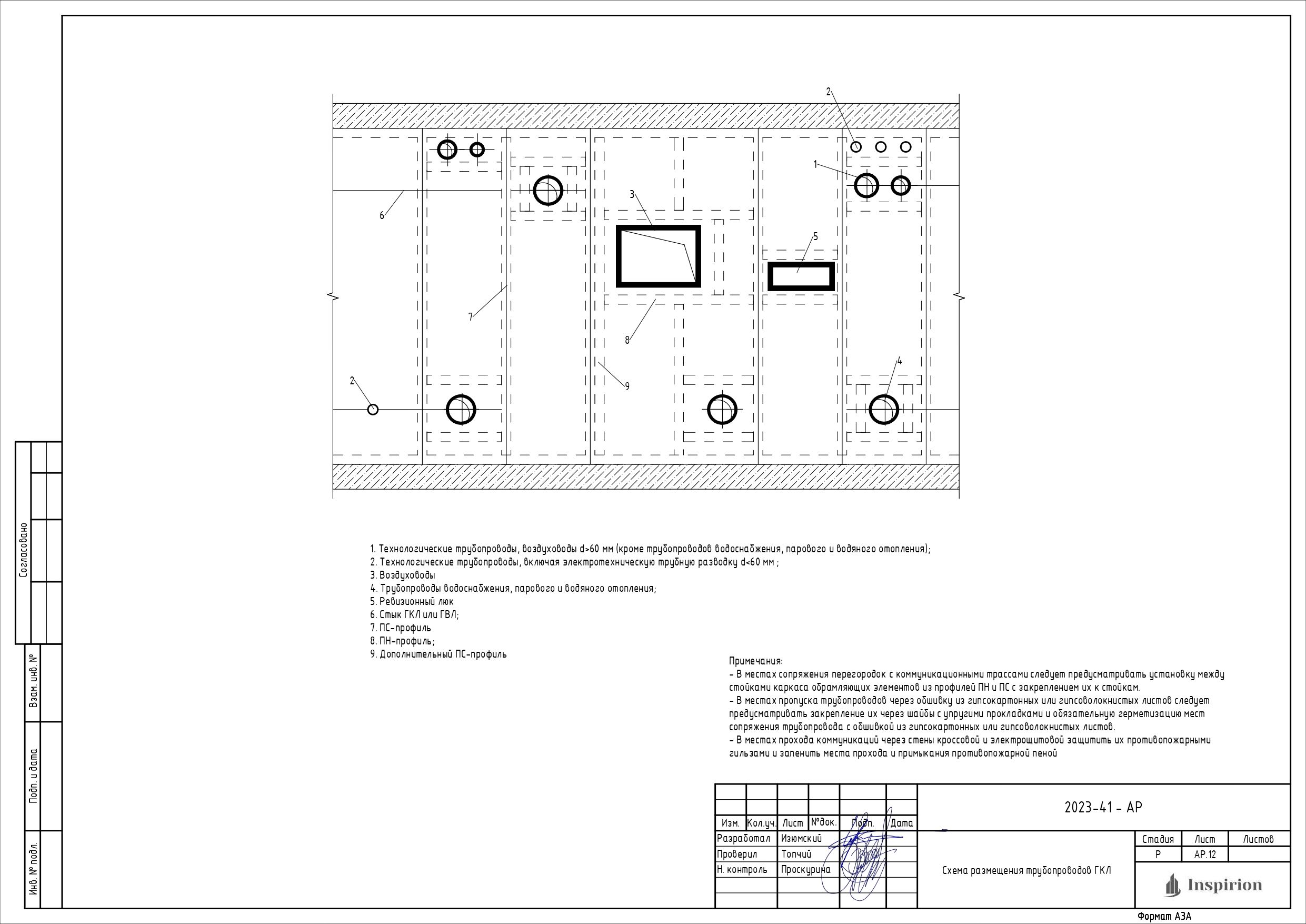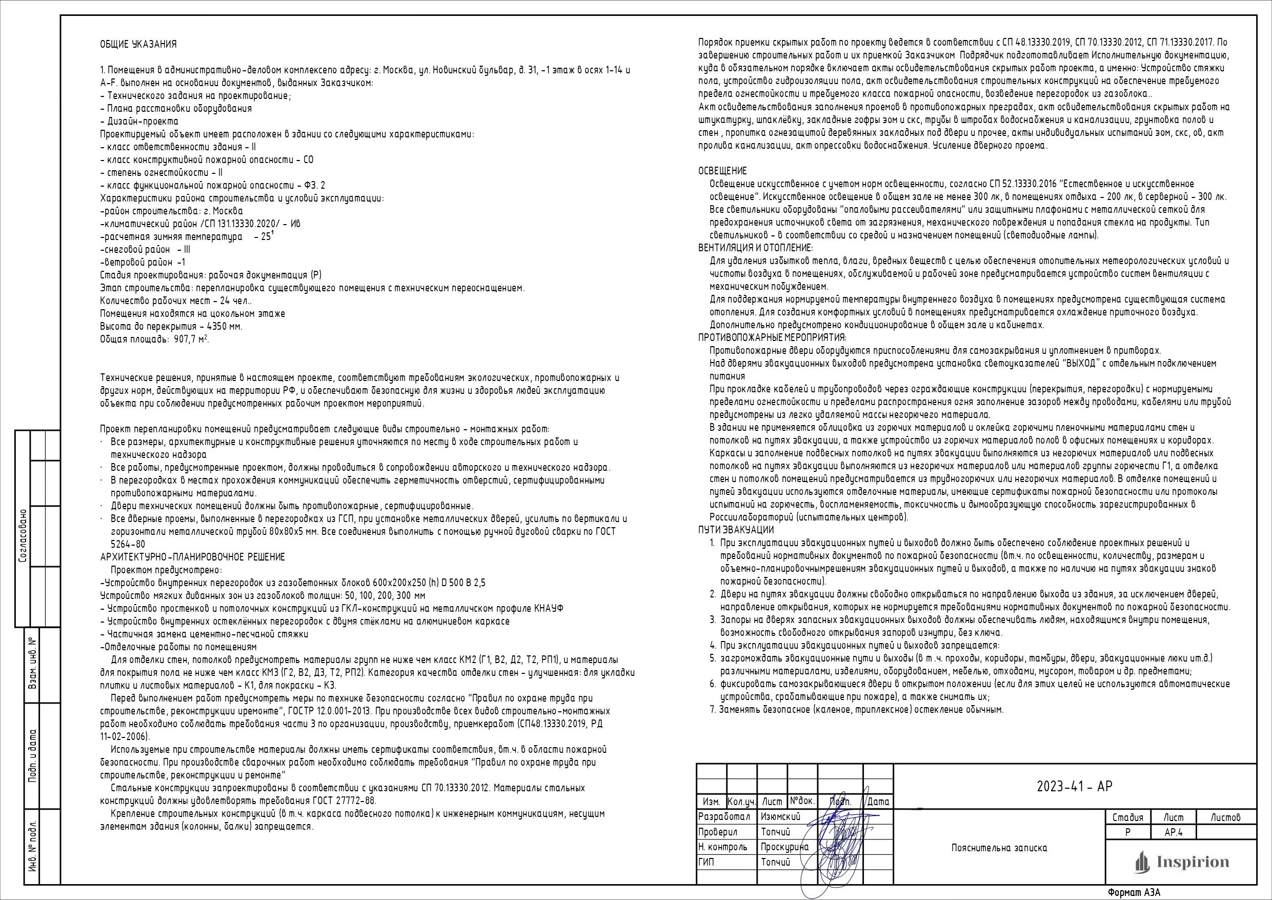 Порядок приемки скрытых работ по проекту ведется в соответствии с СП 48.13330.2019, СП 70.13330.2012, СП 71.13330.2017. По завершению строительных работ и их приемкой Заказчиком Подрядчик подготавливает Исполнительную документацию, куда в обязательном порядке включает акты освидетельствования скрытых работ проекта, а именно: Устройство стяжки пола, устройство гидроизоляции пола, акт освидетельствования строительных конструкций на обеспечение требуемого предела огнестойкости и требуемого класса пожарной опасности, возведение перегородок из газоблока.