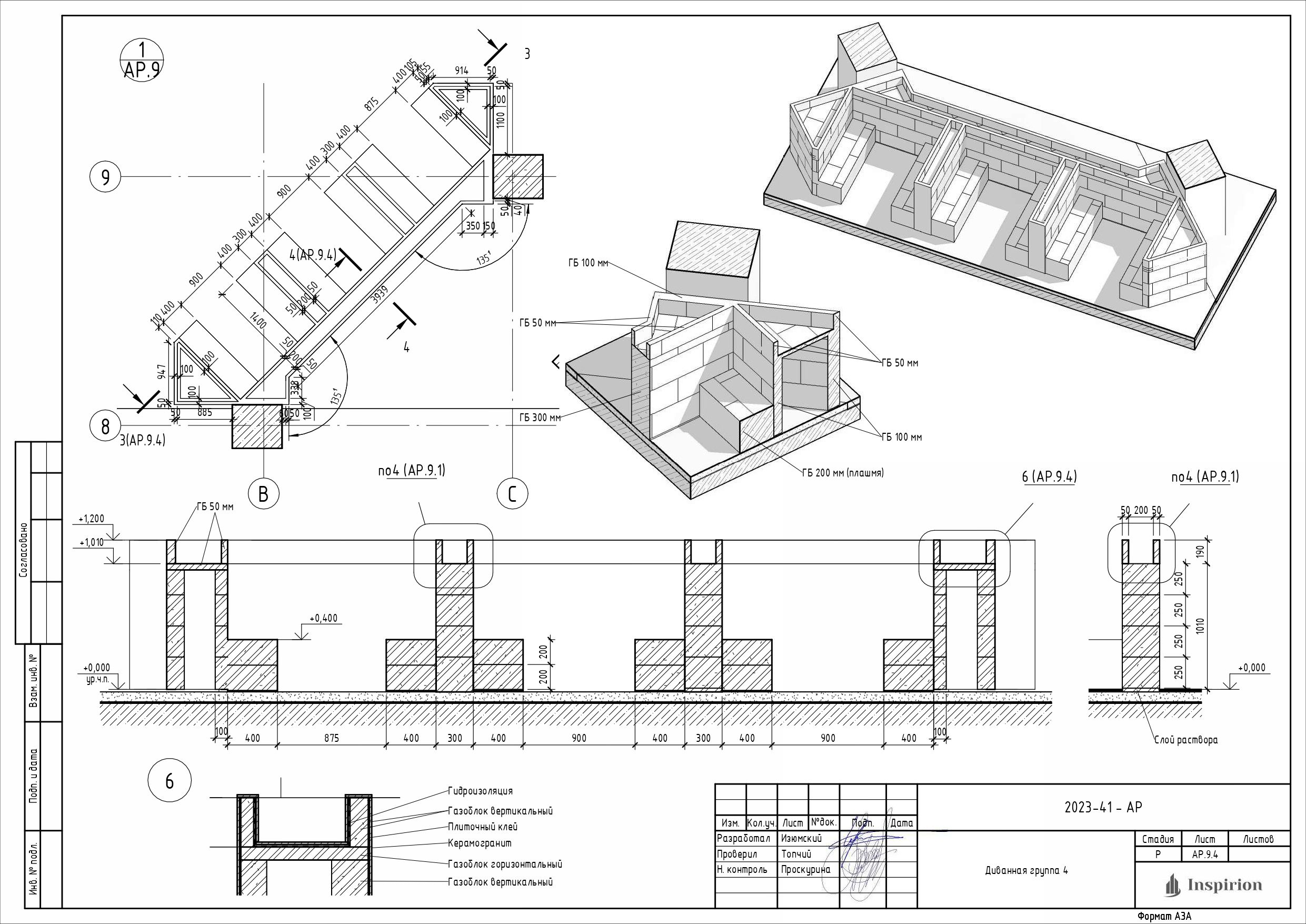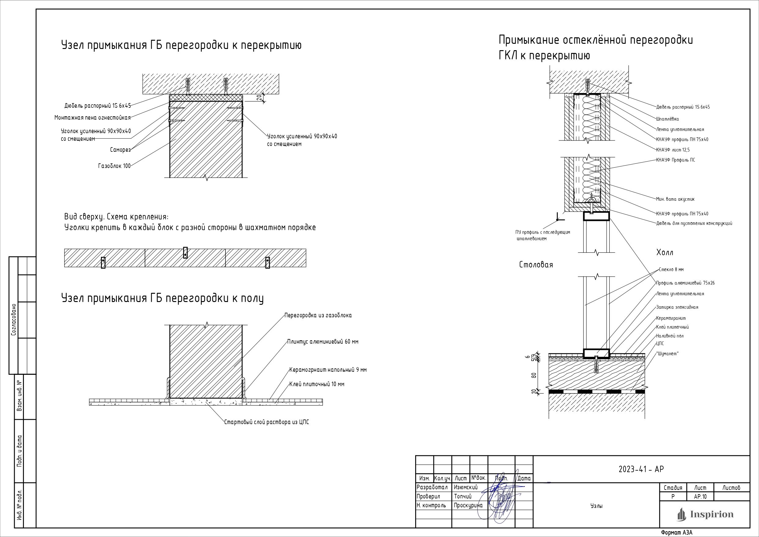 Проектом предусмотрено:-Устройство внутренних перегородок из газобетонных блоков 600х200х250 (h) D 500 B 2,5