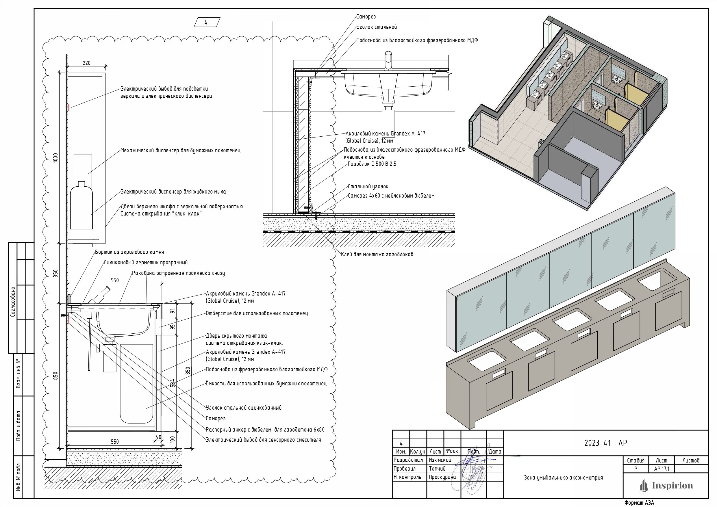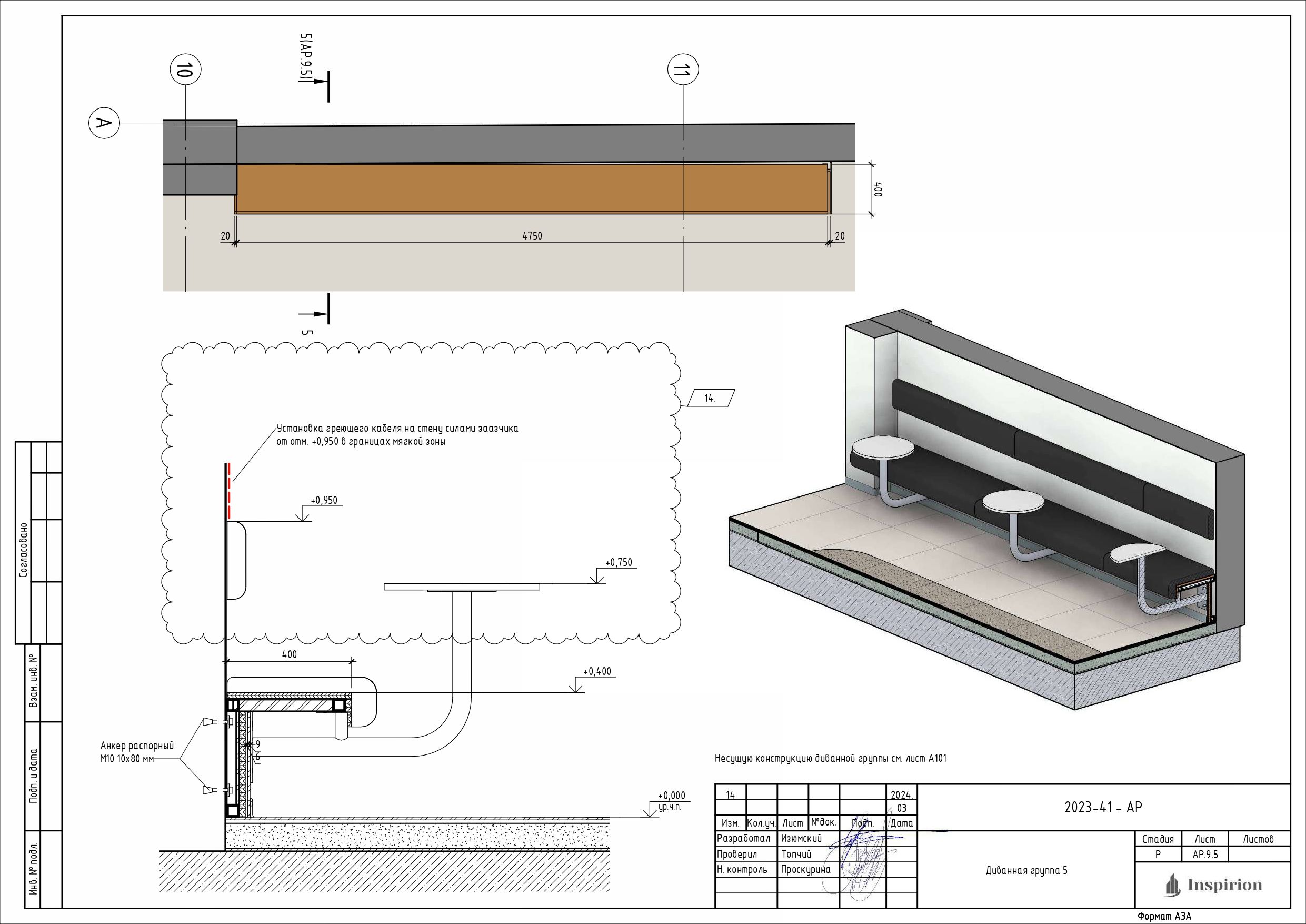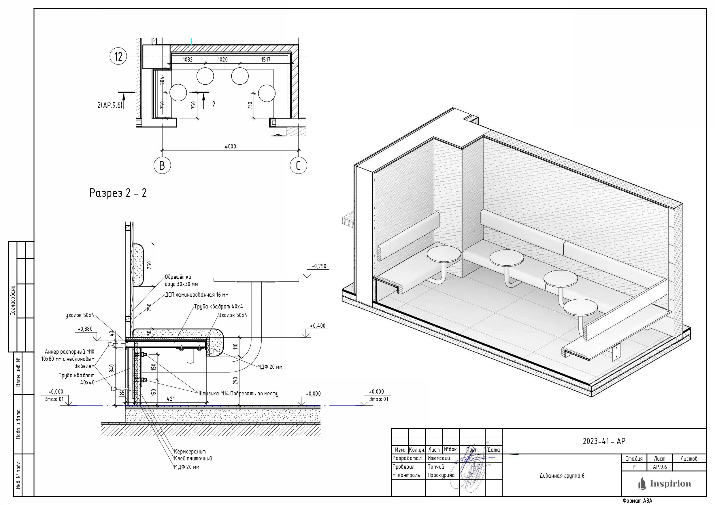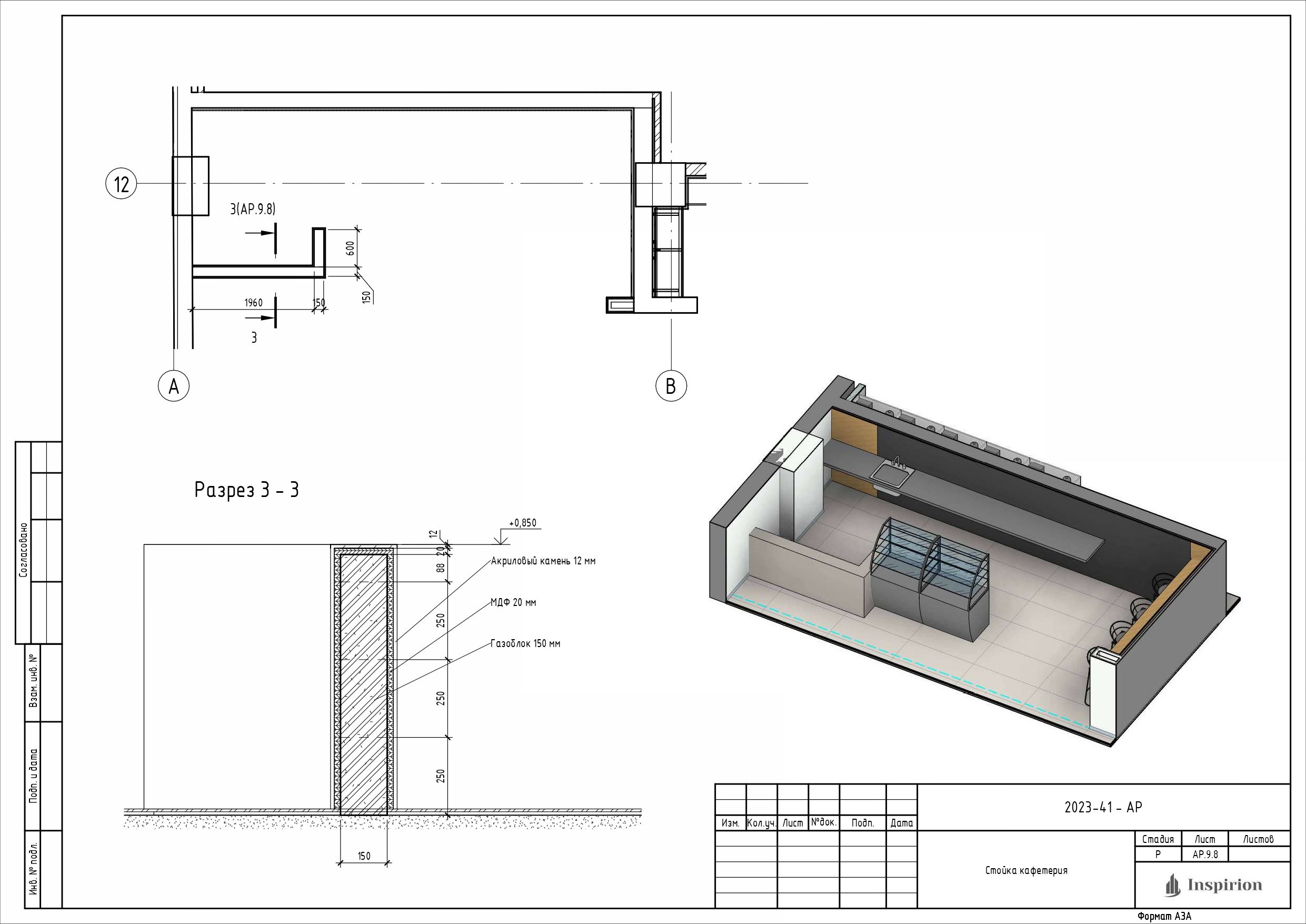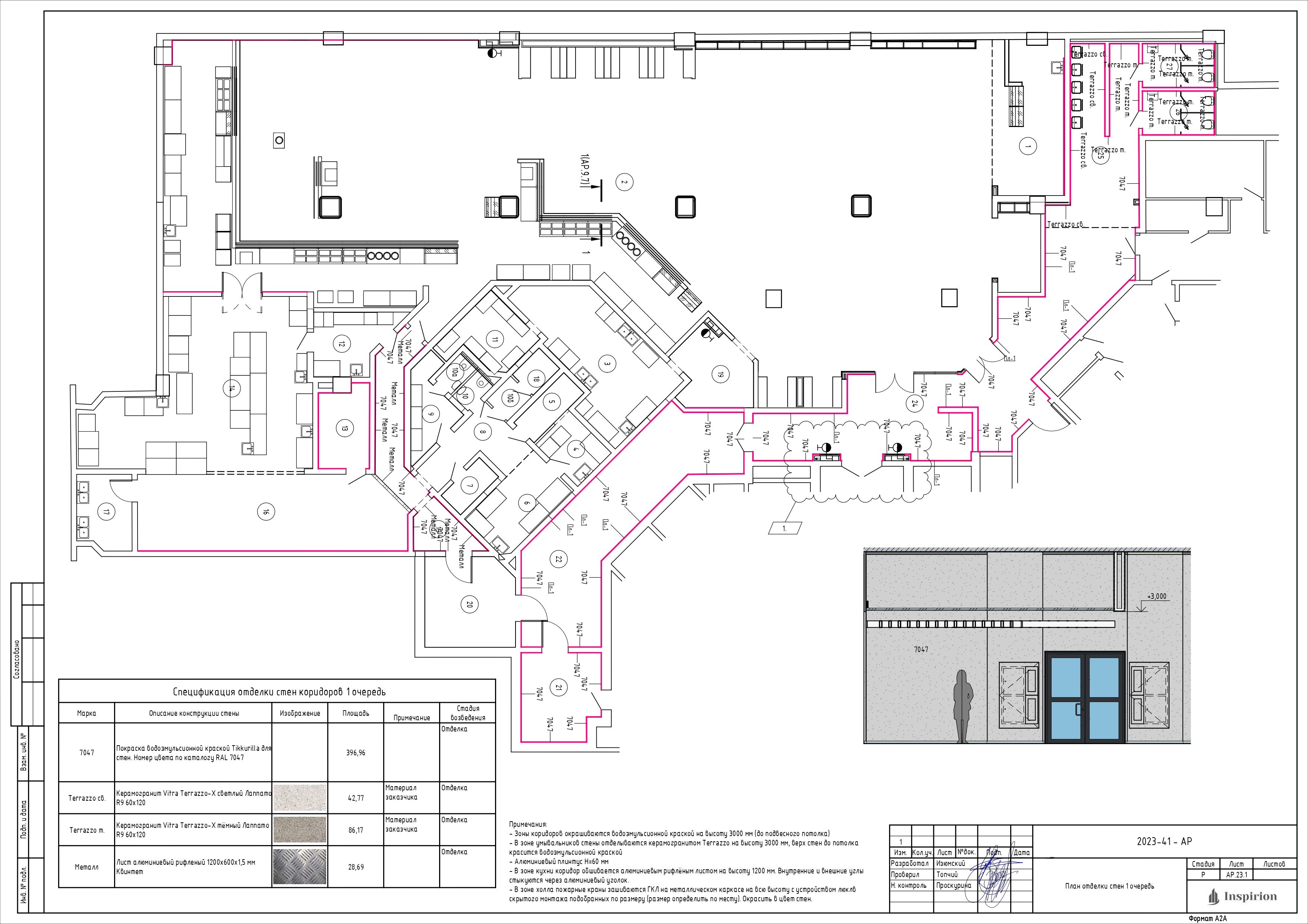 Задача была разработать АР для поэтапного ремонта в столовой, которая должна не прекращать работать. Был разработан АР временной схемы размещения кухни столовой и АР постоянной схемы. Здесь выложен АР постоянной схемы размещения вместе с зоной посадки. Работа в Revit. Архитектурные решения и инженерные решения адаптированы друг к другу. Также были разработаны проекты ОВ, ВК, ЭОМ и СКС под штампом Подрядчика.